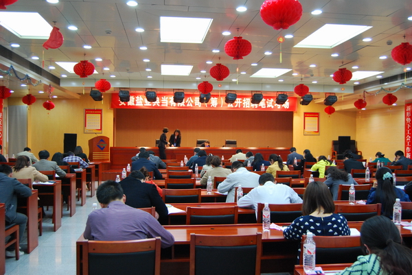 4月26日下午,安徽盐业典当有限公司(筹)经营管理人员公开招聘笔试在盐业大厦23楼会议室举行。本次招聘职位为公司总经理1名、财务部经理1名、客户经理3名。招聘公告通过《安徽日报》、《新安晚报》、《合肥晚报》、新安人才网等媒体发布后,社会反响较为强烈,参与人数众多。经资格审查后,来自省内的59名中青年人才参加了考试,考聘比例为11.2:1,个别职位考聘比例达到21:1。